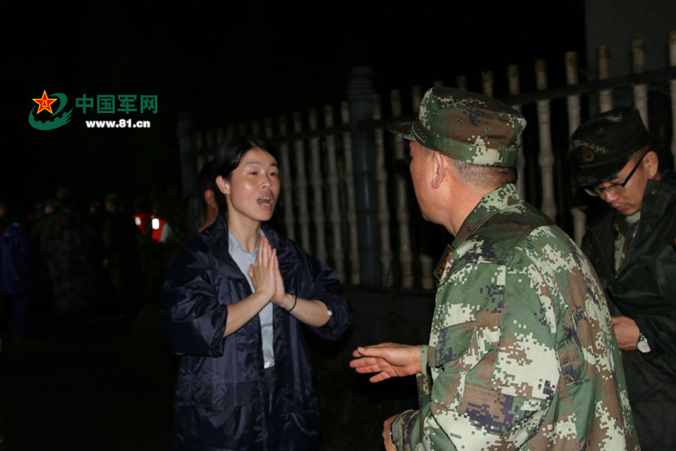 油坝乡长成卢感谢部队官兵。廖振华摄