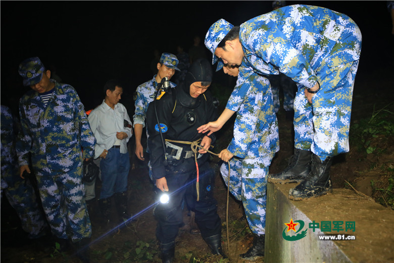 海军工程大学潜水分队紧急探摸湖堤