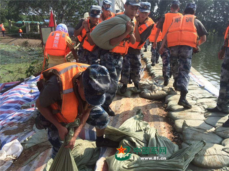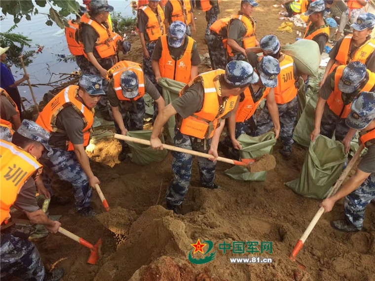 铲土的,装袋的,搬运的,传递的,加固的……不需要指挥员过多的指挥,哪怕是第一次上大堤的新兵,很容易跟着老兵找到自己的位置和职责。——这种默契叫训练有素!