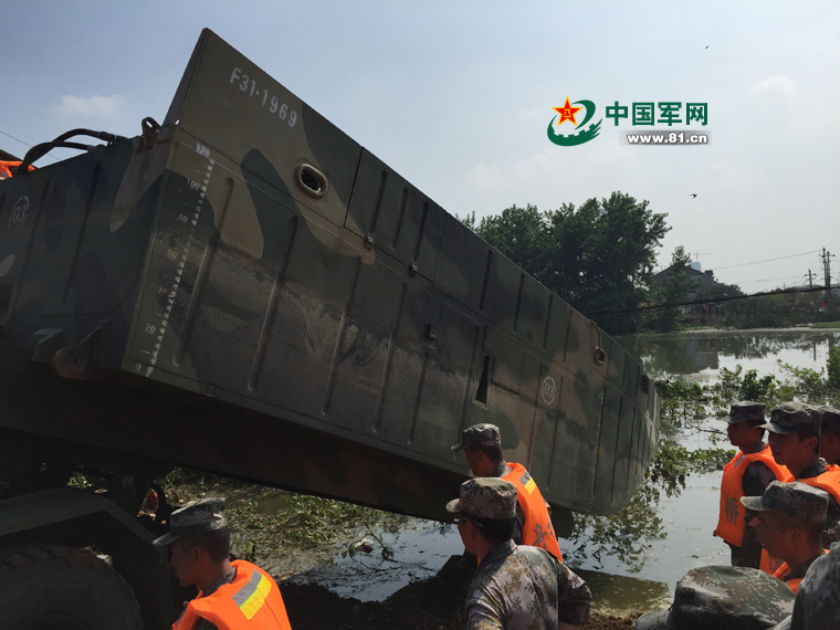 中部战区陆军某舟桥旅携重型舟桥装备驰援灾区。