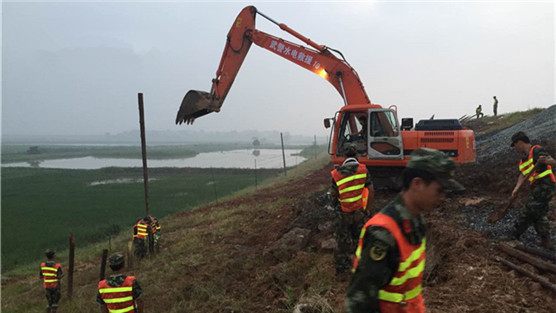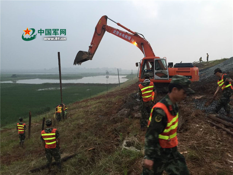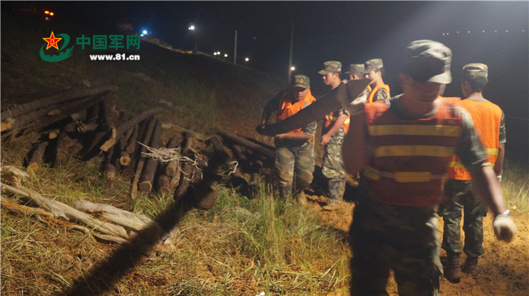中国军网讯(徐迎华、赵洪虎):7月7日晚上,位于江西省九江市彭泽县芙蓉圩的芳湖大堤上机械轰鸣,官兵呼号声、哨声此起彼伏,他们正在紧急加固这处长约两公里的堤坝。