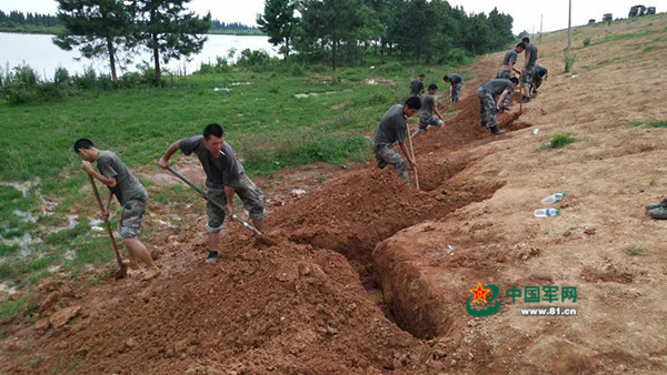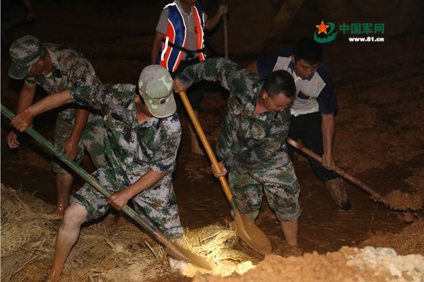 位于险情地点附近的石口镇、康山乡、瑞洪镇武装部长接到县人武部集结民兵应急分队的任务后,兵发多路迅速赶往康山大堤。石口镇常务副镇长汤志明,卸任镇人武部长不到半个月,听到这个消息后,立即向县人武部请战,带领刚刚下堤的十余个民兵赶赴任务地点。在他的带领下,该镇民兵二话不说,直接跳到泡泉最为严重的水里,与抗洪官兵抢着干、比着干。县人武部职工汤秋昌在送来照明器材后,直接拿起一把锹,脱掉外套就干了起来。