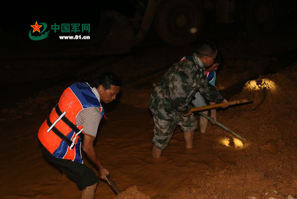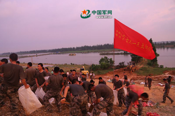 康山大堤险情段先后共投入工程机械3台,运输车4台,现役官兵100人,民兵100余人,大家连夜奋战,经过10个小时的突击,于凌晨4时左右完成整个险情地段的排水导流、填石筑墙工作,力保康山大堤和后方人民群众生命财产安全。