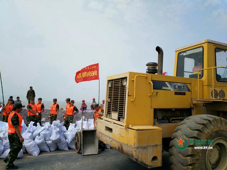 截至发稿,官兵们已经续奋战10个多小时,处置大小险情几十处,夯实木桩90余根,装填沙袋26000余袋,搬运石料500余吨,构筑护坡1600平米。