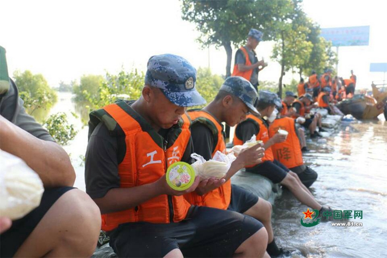 经过15个小时的连续奋战,官兵们在孝汉大道路两边的堤坝原有基础上加长子堤共900米,加高加宽各1米。记者发稿时,官兵们正在配合地方人员清理道路积水。