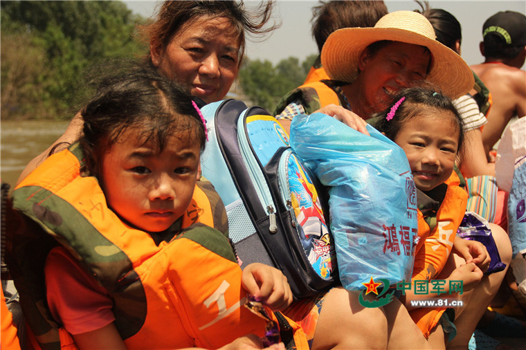 上船后,6岁半的双胞胎姐妹徐颖文、徐颖萱对解放军叔叔充满好奇,一双眼睛不时瞟过来。