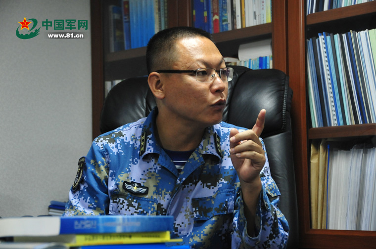 在舰上的办公室里,高克与记者交谈。中国军网记者 毛志文 摄