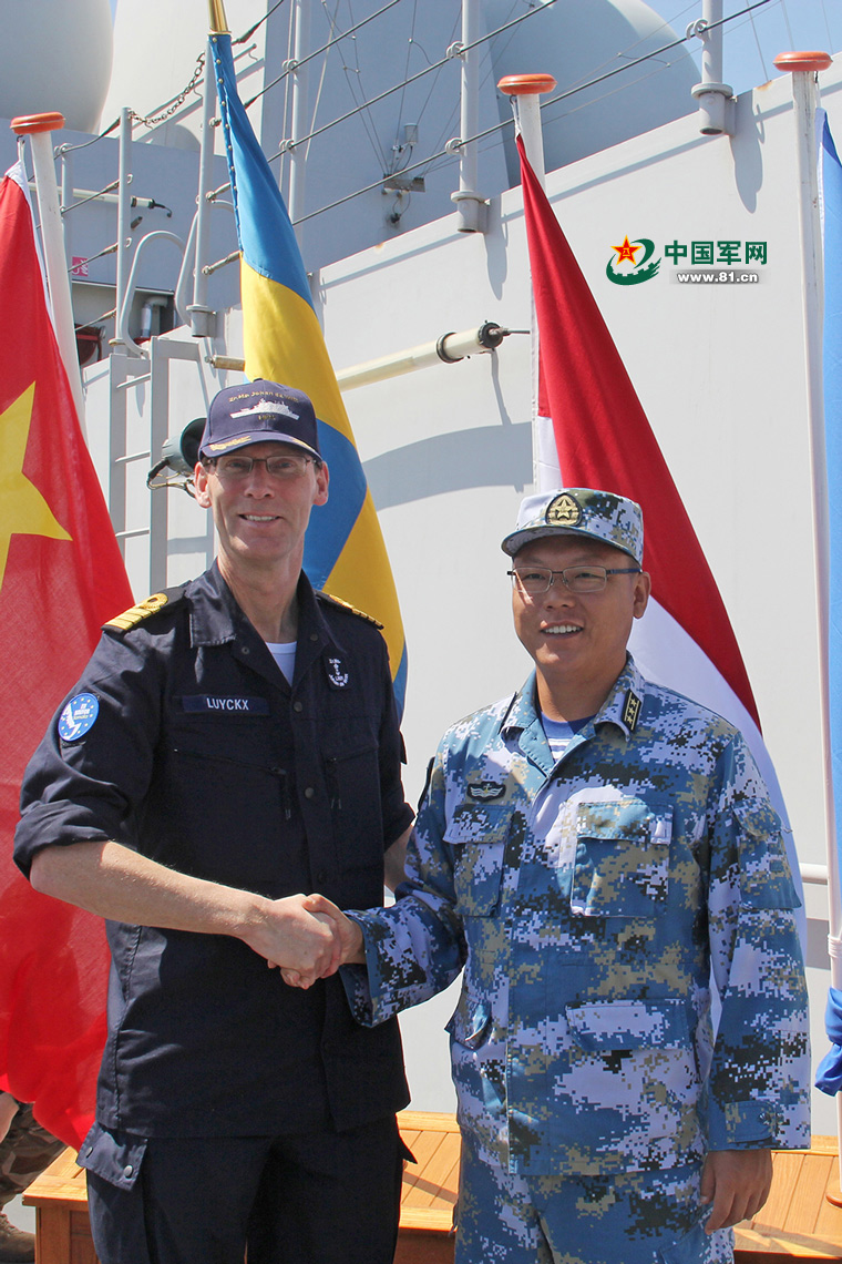2015年2月16日,临沂舰高克舰长与欧盟465编队指挥官会面交流。熊利兵 摄