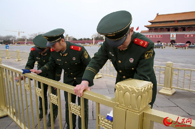 武警天安门支队清洁广场