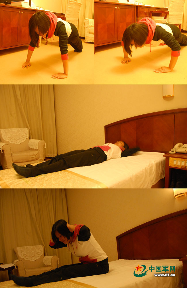 7点40分,文敏和远隔数千公里的连队战士同时开始晚间训练。条件有限,文敏给自己制定的训练计划是200个仰卧起坐和50个俯卧撑。南海边的营区里,海军陆战队的“霸王花”们挥汗如雨,10公里变速跑,200个俯卧撑早已是家常便饭。