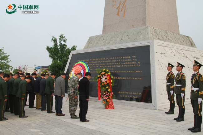 2014年4月1日,武警8750部队组织官兵来到麻栗坡烈士陵园祭扫烈士墓,缅怀先烈。清明节来临之际,该部组织官兵前往麻栗坡、马关、河口等5个烈士陵园祭扫烈士墓,缅怀为守卫祖国疆土而壮烈牺牲的英烈们。官兵通过祭扫烈士墓、聆听英烈的英雄事迹等,感受着先辈们忠诚坚定的爱国信念和不屈不挠的战斗意志,用烈士们的英雄事迹激励官兵爱军精武,建功警营。在烈士纪念碑前,官兵们肃穆而立,向烈士纪念碑敬献花篮,鞠躬默哀,深切缅怀革命先烈。颜国平 摄