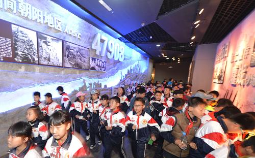 资料图:4月3日,辽宁朝阳市胜利小学的学生来到爱国主义教育基地赵尚志纪念馆缅怀先烈。 赵尚志将军出生于辽宁省朝阳市,是东北抗日联军的创建者和主要领导人之一。 新华社发(白铁军 摄)