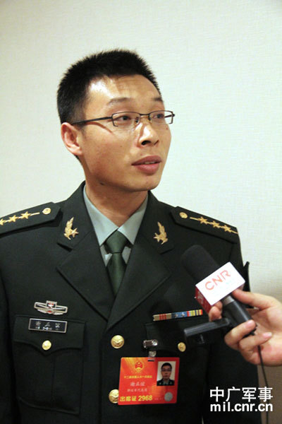 “作为雷锋连的指导员参加两会,我特别的高兴。因为我这次我的议案,主要说的是,对全社会弘扬雷锋精神的几点建议。雷锋老班长是实践社会主义、共产主义,思想道德的楷模。为贯彻落实十八大,提出推动学雷锋活动常态化这个决策部署,我感觉结合我们的团队的五十年来的学雷锋的活动经验,提一些意见,既是一种义务,更是一种责任,也是一种荣耀。能有这个机会,应该来讲这给了我们弘扬雷锋精神,一个更大的平台。”谢正谊说道。