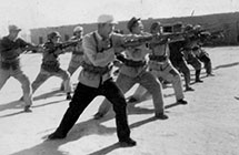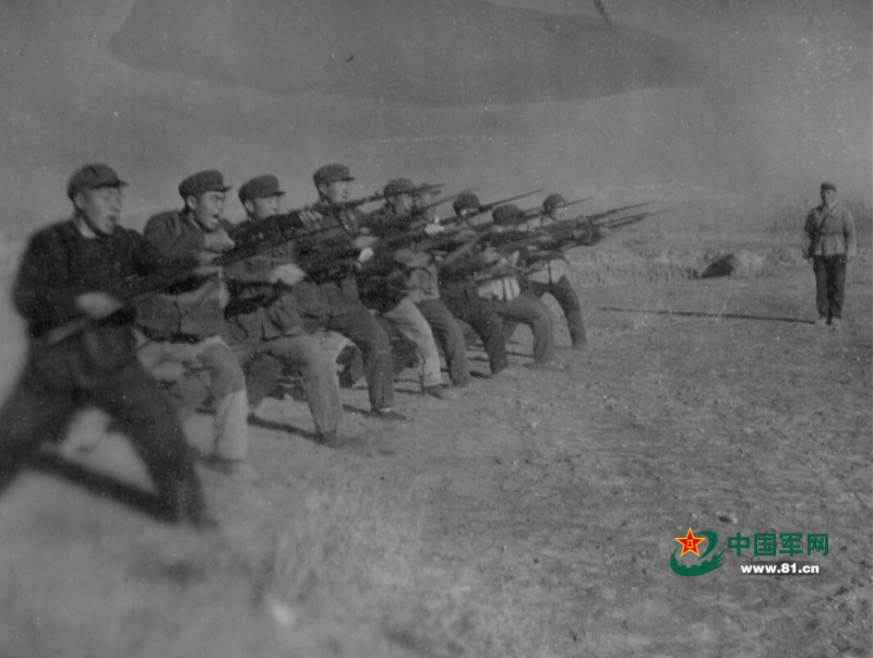 上世纪五六十年代,农五师红星二场(现在的十三师红星二场)民兵们正在进行军事训练。红星二场的前身是中国人民解放军一兵团六军十六师四十七团,1952年遵照毛泽东主席的命令,部队转为生产大军,从事新疆的生产建设。红星二场依然保留着军事建制,每年开展民兵军事训练,团场的武装工作多次被上级部门表彰。