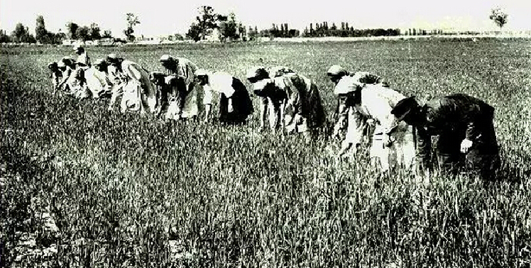 上世纪50年代集体拔草。 王民斌 摄