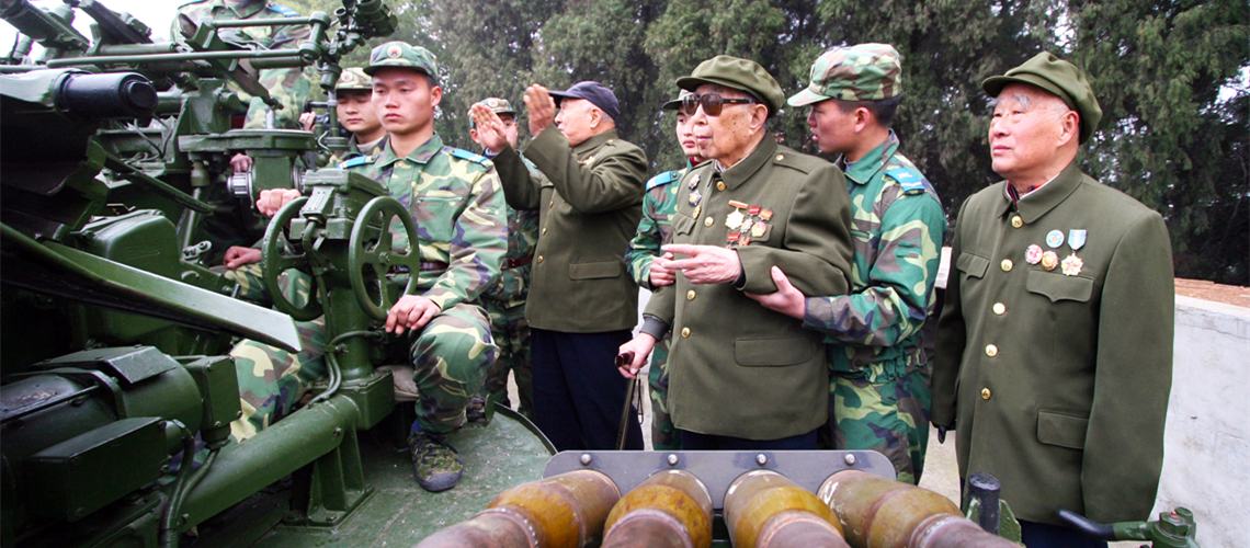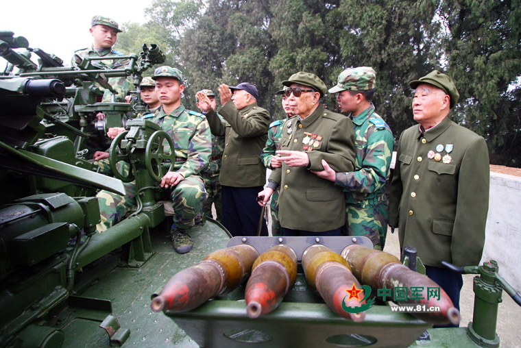 2007年,老团长张绪与报告团成员一起到高炮某团阵地与官兵讲述革命传统