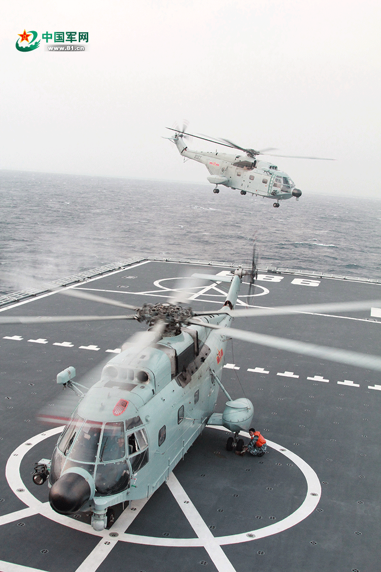 海军“神电”系列演习中,舰载直升机升空侦察