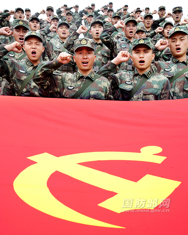 火箭军某导弹旅官兵在党旗下宣誓。冯根锁 摄