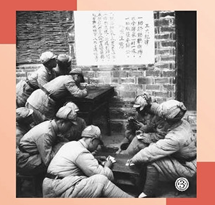 平津战役中,改编为人民解放军的原傅作义部士兵,学习“三大纪律八项注意”。