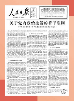 1980年,党的十一届五中全会通过的《关于党内政治生活的若干准则》。