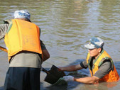 在武汉市蔡甸区沉湖湿地,两艘冲锋舟正沿着湖堤进行巡防巡查,带队的是1998年被共青团中央授予“抗洪抢险英雄突击队员”的邵飞。