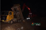 7月11日下午,武警交通二总队六支队3台挖掘机双向推进,抛投方石块,全力封堵湖南华容新华垸大堤决口。