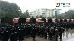 参加抢险任务的战士们各自迅即登上指定车辆后,部队立马向野芷湖机动。武汉,暴雨,抗洪