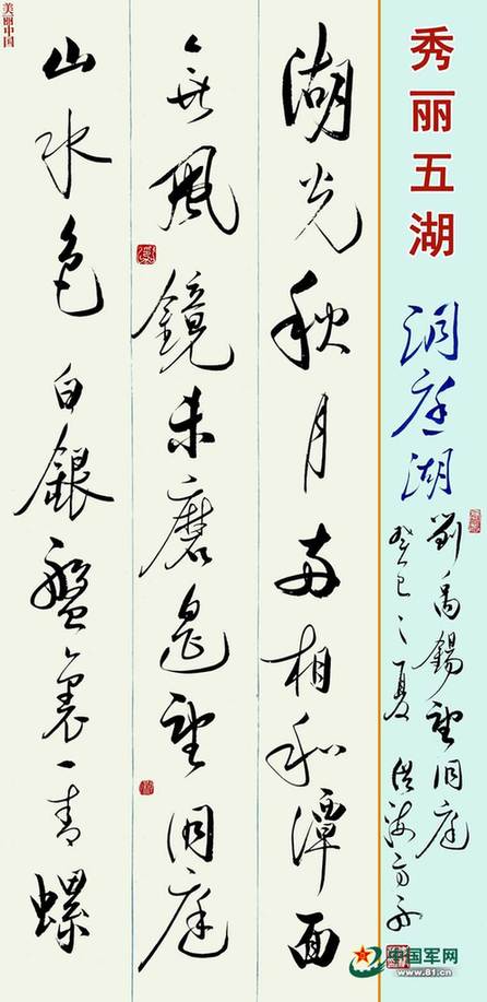 湖光秋月两相和,潭面无风镜未磨。遥望洞庭山水色,白银盘里一青螺。