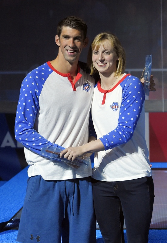 7月3日,美国游泳选手菲尔普斯(左)与莱德茨基入选国家队。