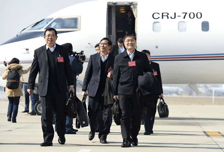 3月1日,来自广西壮族自治区的全国政协委员抵达北京,出席全国政协十二届四次会议。
