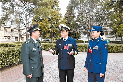 3月6日,在解放军代表团小组审议政府工作报告时,军队人大代表吕跃广(右二)积极发言。本报记者 冯凯旋摄
