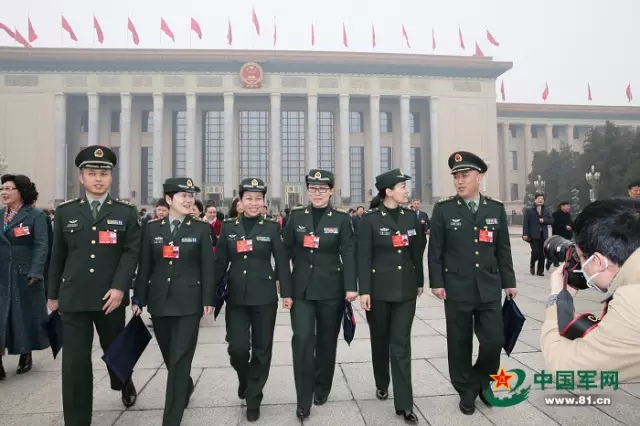 3月4日,十二届全国人大四次会议在北京人民大会堂举行预备会议。图为会议结束后军队人大代表走出会场。解放军报记者 穆可双 摄