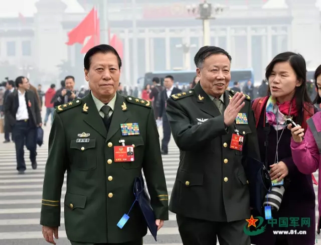3月3日下午,全国政协十二届四次会议在北京人民大会堂开幕。开幕前,军队政协委员刘红军(左)、马丙泰遇到记者采访,马丙泰委员笑着说:“不好意思,大会马上开幕了,我们要抓紧进场了。“解放军报记者 穆瑞林 摄