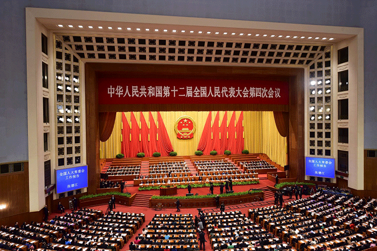 3月9日,十二届全国人大四次会议在北京人民大会堂举行第二次全体会议。