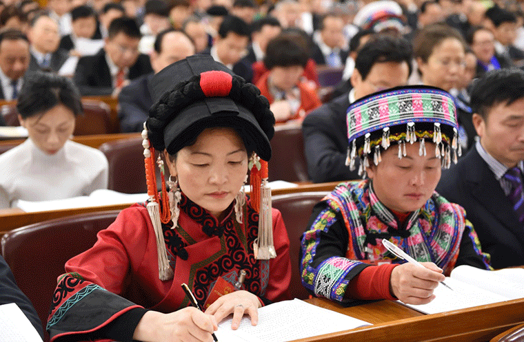 3月9日,十二届全国人大四次会议在北京人民大会堂举行第二次全体会议。这是全国人大代表人大在听会。
