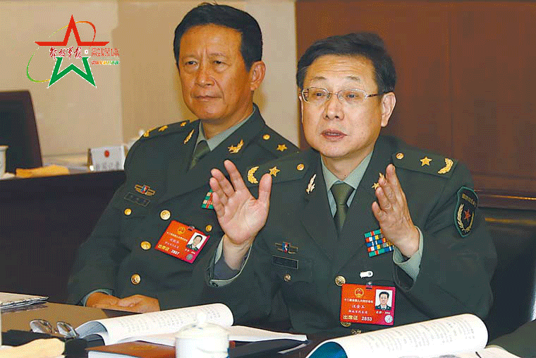 3月7日,军队人大代表汪金玉(右)在小组会上发言。 解放军报记者 李三红 摄