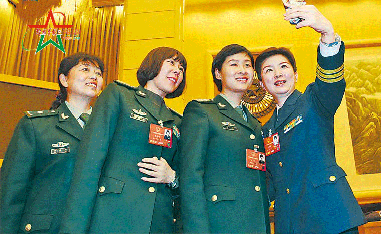 3月7日,解放军代表团第一次全体会议结束后,与会女代表用手机记录下美好的瞬间,迎接“三八”国际妇女节的到来。 解放军报记者 冯凯旋 摄