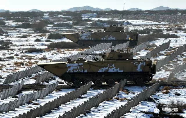 海军陆战队合成营的装甲车快速通过障碍通道,向蓝军前沿阵地发起冲击。