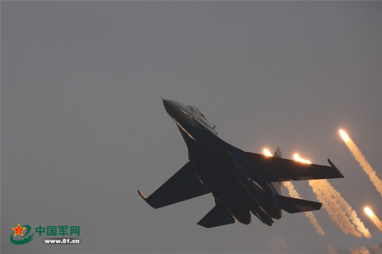 战机逃脱时的绚烂烟火