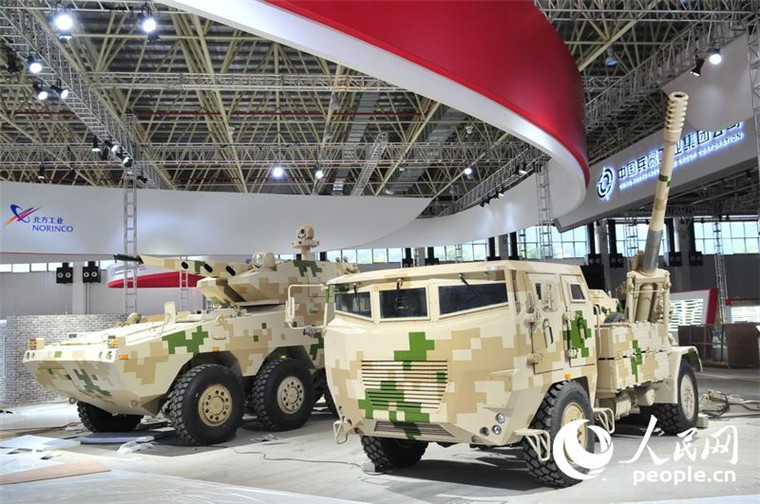 2016年10月25日,两款造型前卫的国产新型轮式装备在珠海航展中心中国兵器装备集团公司展台布展。 摄影:人民网 杨铁虎