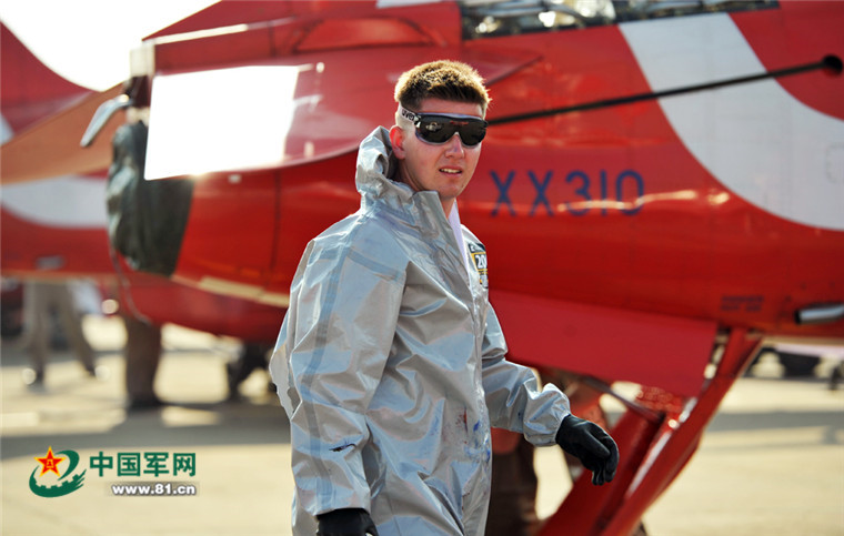 英国“红箭”飞行表演队工作人员。李爱明 摄