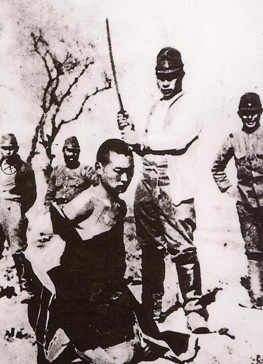 图为南京青年被日军捆绑砍杀。日军以残杀中国人为游戏,旁观的日本军人还在嬉笑。