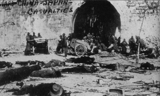 德国人约翰▪拉贝亲眼目睹了南京大屠杀,并将这些事实记录了下来。“开车经过市区,我们才晓得破坏的巨大程度。车子每经一二百米就会压过尸首,那些都是平民的尸首。我检查过,子弹是从背后射进去的,很可能是老百姓在逃跑时从后面被打死的。”图为南京某城门前尸体遍地。