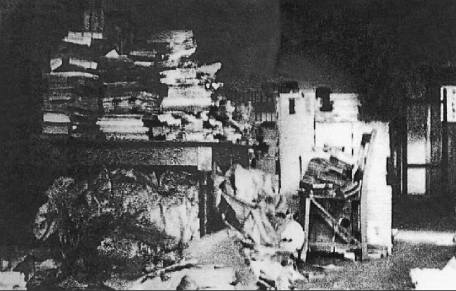 日军还有目的地掠夺中国文化珍品,从上海派来精于鉴别文物图书者,动用军队、特工人员,将省立国学图书馆和中央研究院等70多处藏书抢走。累计被日军掠夺的图书、文献达88万册,超过当时日本最大的图书馆东京上野帝国图书馆85万册的藏书量。图为金陵大学中国文化学院被日军劫掠后的情形。