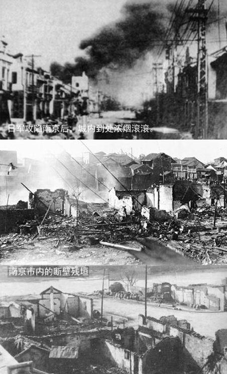 日军在南京城乡实施了大规模纵火焚烧。在军官指挥下,一队队日军手持火把,在街巷 横冲直撞,将房屋一座接一座点火燃烧。南京主要商业街道、繁华的太 平路房屋被烧毁90%。著名的夫子庙被日军烧毁,大成殿荡然无存。周围的金粉楼台、老字号商店如奇芳阁、六凤居、得月楼等都化作焦土。