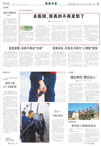 “小仝,发什么愣呢?”耿队长拍拍我的肩膀。听了我的顾虑,他笑着宽慰我:“现在支队已经推开了各中队与驻地医疗机构建立合作的机制,一系列惠兵政策新鲜出炉,凡中队官兵到县人民医院就诊,1000元以内的医疗费可签单挂账,由医院定期汇总上报县里相关财政解决。”