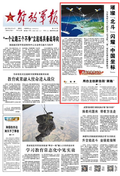 “中国坐标”展示自主创新的中国智慧。“北斗”系统研制过程中,科技人员从零起步,创造性提出了集定位、通信和授时三大功能于一体的工程建设方案,攻克了一系列技术难关,凭借自己的实力开辟了卫星导航的新纪元。这条充满中国特色的自主创新之路何尝不是值得分享的宝贵财富!