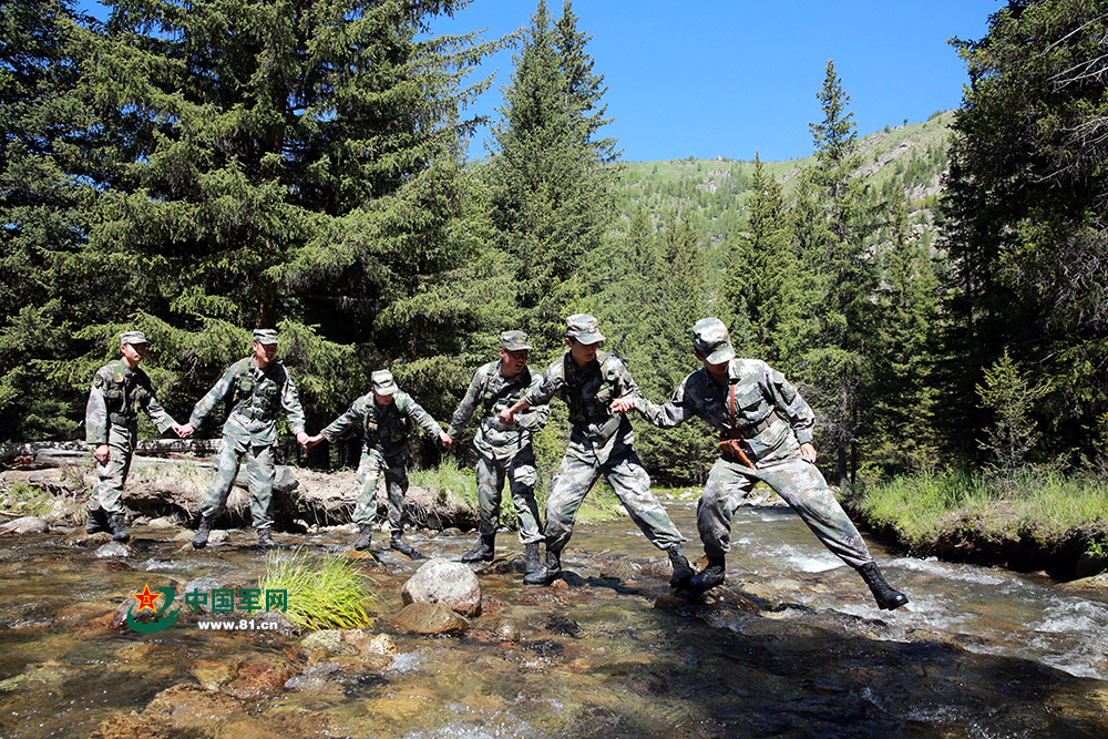 进驻哨所的官兵们趟激流、穿密林开展巡逻任务。