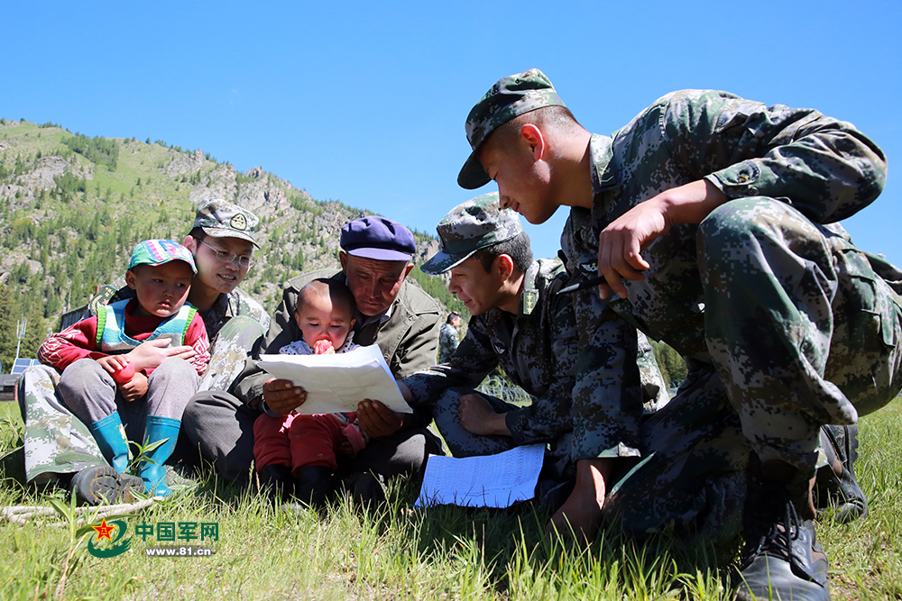 官兵们为转场路过的牧民宣讲边防政策法规。