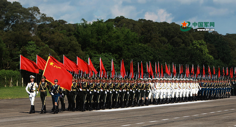 6月30日,中共中央总书记、国家主席、中央军委主席习近平在香港石岗军营视察并检阅中国人民解放军驻香港部队。这是驻香港部队官兵接受检阅。
